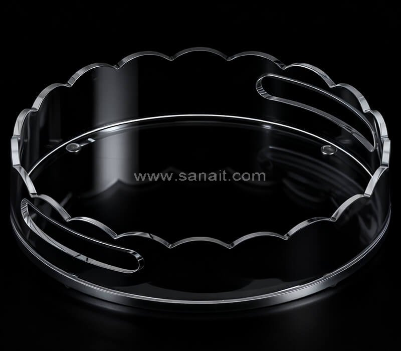 Plateau acrylique rond festonné avec poignées Factory Custom