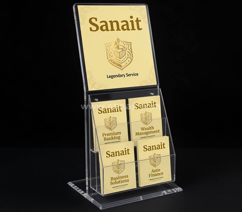 Ordinate oggi il vostro supporto per opuscoli a 4 tasche in acrilico trasparente
