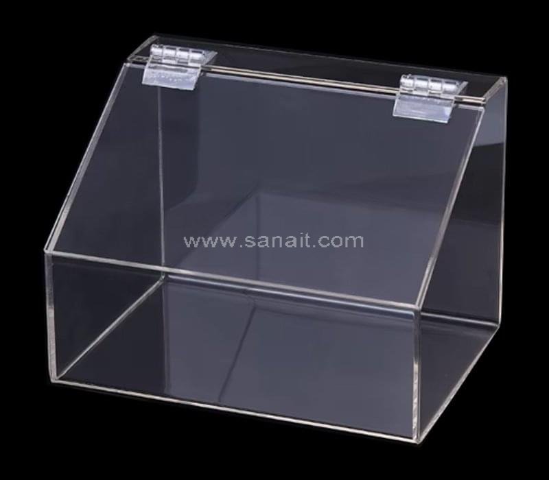 3. Coperchio: Coperchio a doppia cerniera in acrilico trasparente con cerniere metalliche sicure per un'apertura/chiusura senza problemi.