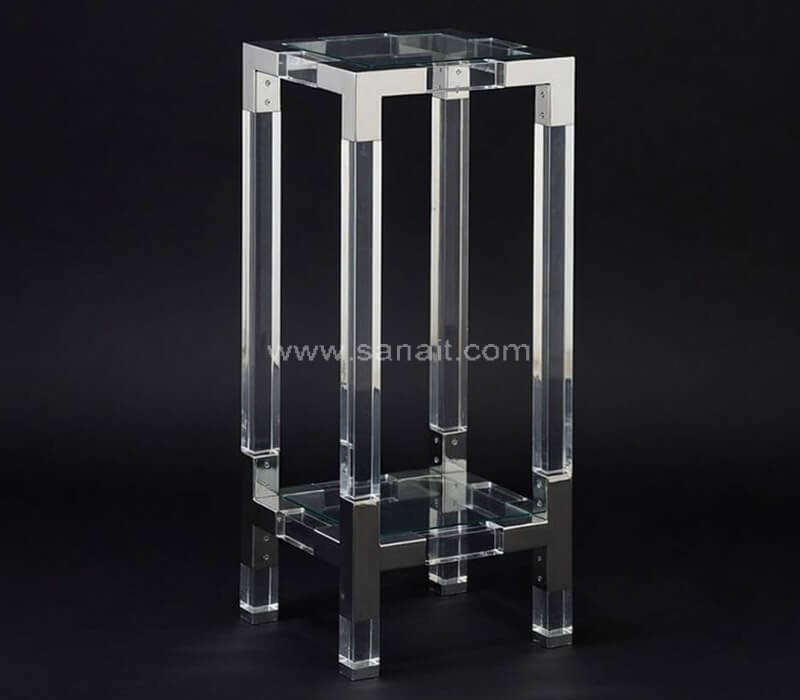 Custom Elegant Clear Acrylic Pedestal with Polished Chrome